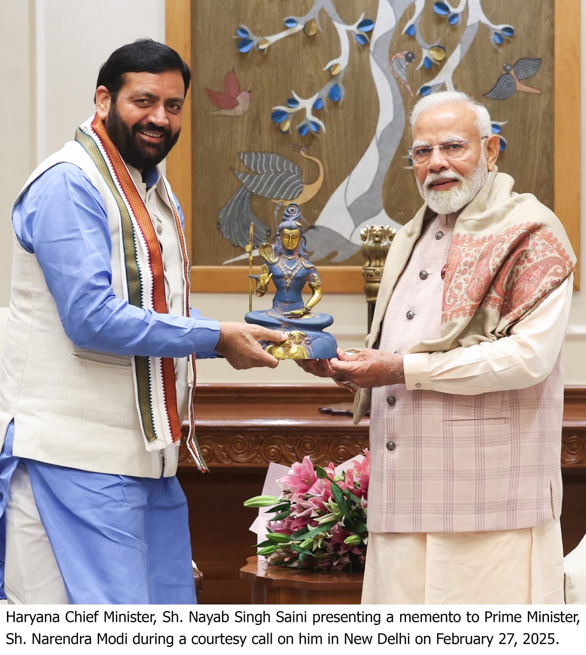 मुख्यमंत्री नायब सिंह सैनी ने नई दिल्ली में प्रधानमंत्री नरेंद्र मोदी से मुलाकात की