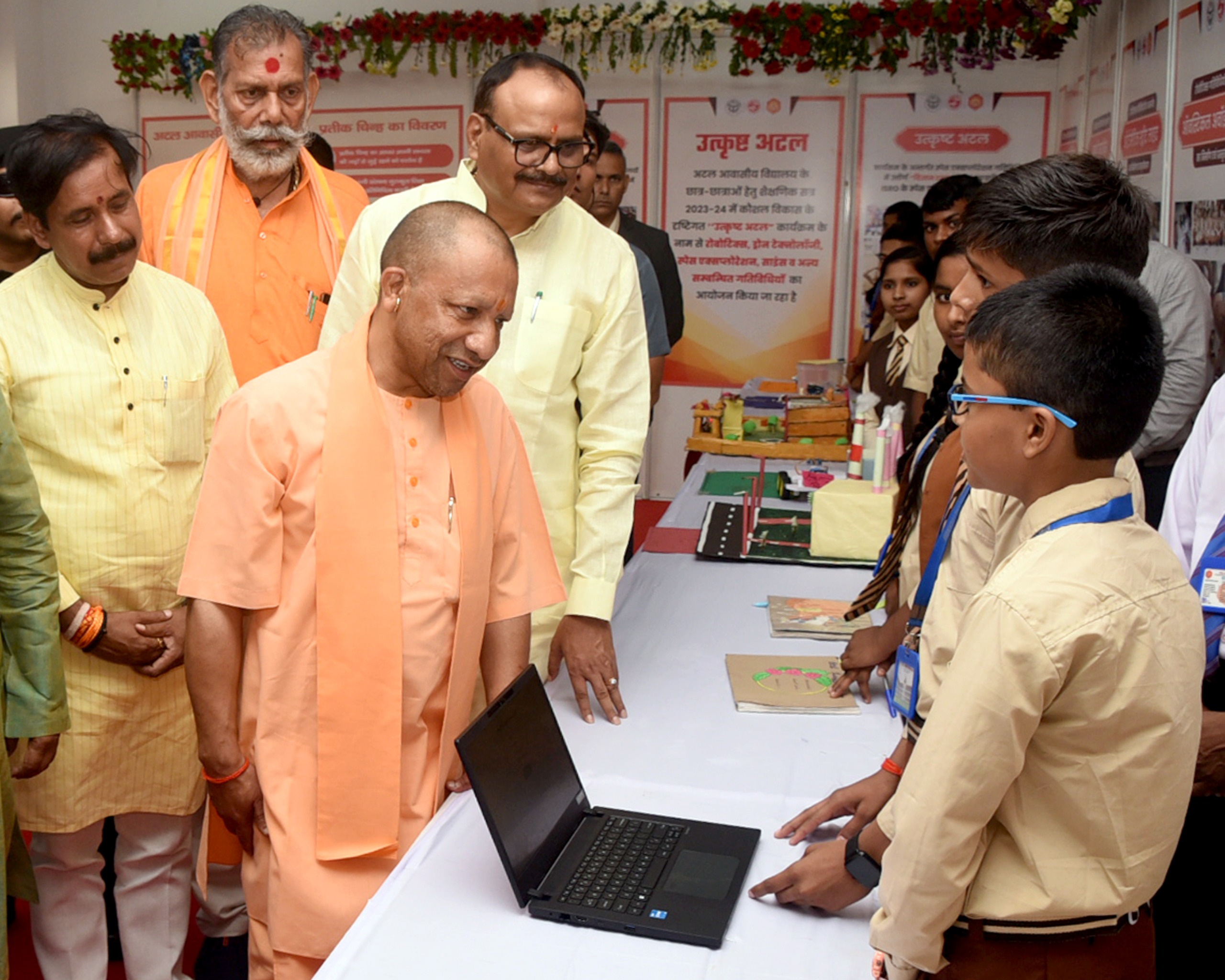 कार्यक्रम के लिए मोहनलालगंज स्थित अटल आवासीय विद्यालय पहुंचे सीएम योगी आदित्यनाथ ने सबसे पहले छात्रों द्वारा बनाए गए इनोवेटिव मॉडल्स की प्रदर्शनी देखी। इस प्रदर्शनी में स्मार्ट डस्टबिन, स्मार्ट ब्लाइंड स्टिक, ऑटोमैटिक स्ट्रीट लाइट, ऑबस्टिकल अवॉइडिंग रोबोट, कंप्यूटर मॉडल, कैलीग्राफी और आर्ट एंड क्राफ्ट जैसे डिवाइस प्रस्तुत किए गए, जिसे देखकर सीएम योगी ने छात्रों की सराहना की और उन्हें प्रोत्साहित किया। छात्रों ने उन्हें अपने मॉडल्स की विशेषताएं भी बताईं। एक बच्ची ने सीएम योगी का चित्र भी बनाया, जिस पर सीएम योगी ने अपने सिग्नेचर भी किए। इस अवसर पर सीएम ने सभी बच्चों के साथ फोटोशूट भी कराया। यहां से सीएम योगी सीधे क्लासरूम पहुंचे, जहां उन्होंने बच्चों से विद्यालय के बारे में, पढ़ाई के बारे में चर्चा की और उन्हें चॉकलेट वितरित की। सीएम योगी ने बच्चों से पूछा कि पहले किस तरह की शिक्षा प्राप्त कर रहे थे और अब उनके जीवन में क्या बदलाव आया है। बच्चों ने बताया कि अब उन्हें अब स्मार्ट क्लास में पढ़ने का सुअवसर मिल रहा है।