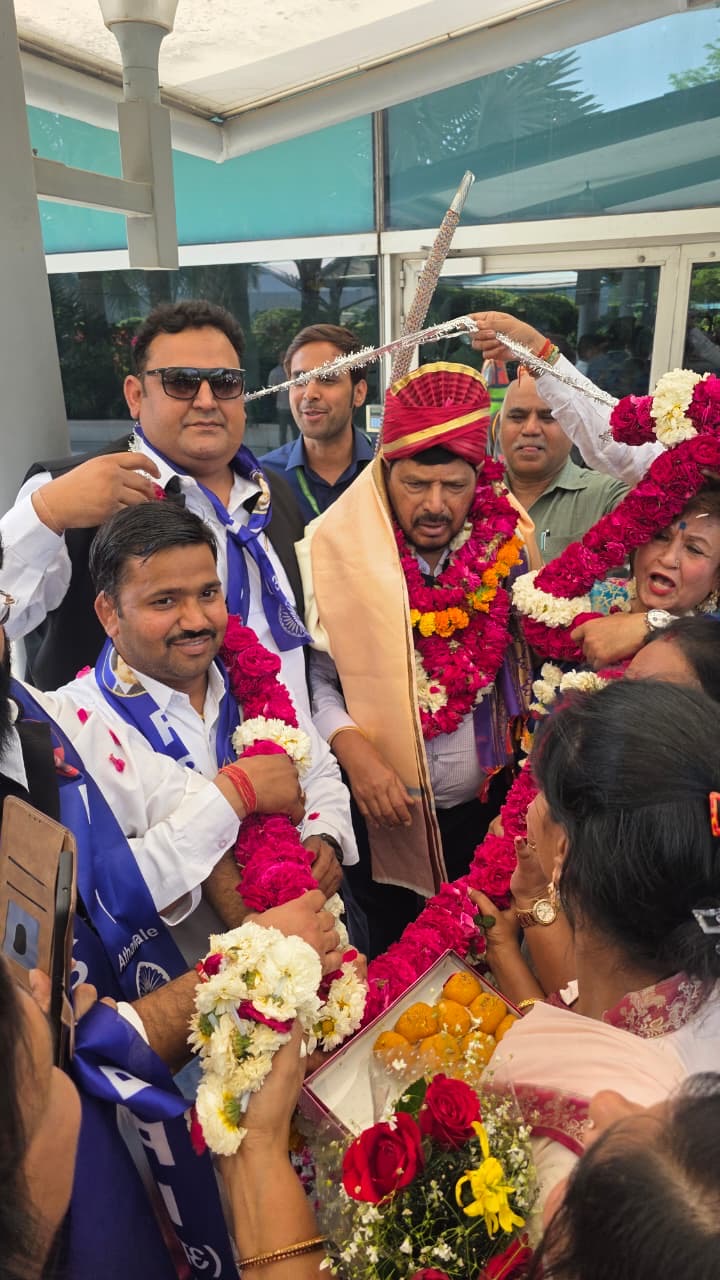 नई दिल्ली। रिपब्लिकन पार्टी ऑफ इंडिया (आठवले) के राष्ट्रीय अध्यक्ष एवं केंद्रीय मंत्री रामदास आठवले को तीसरी बार राज्यसभा के लिए उम्मीदवार घोषित किए जाने पर दिल्ली एयरपोर्ट पर उनका भव्य और उत्साहपूर्ण स्वागत किया गया। इस अवसर पर हरियाणा प्रदेश अध्यक्ष एडवोकेट रवि सोनू कुंडली अपने समर्थकों के साथ विशेष रूप से उपस्थित रहे और उन्होंने केंद्रीय मंत्री का फूल-मालाएं पहनाकर जोरदार स्वागत किया।