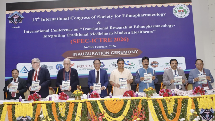 मोहाली, 26 फरवरी 2026: नेचुरल प्रोडक्ट्स विभाग, राष्ट्रीय औषधि शिक्षा एवं अनुसंधान संस्थान (नाइपर), मोहाली, भारत, एथ्नोफार्माकोलॉजी सोसायटी (एसएफई), कोलकाता, भारत के सहयोग से संयुक्त रूप से 13वीं अंतरराष्ट्रीय एथ्नोफार्माकोलॉजी सोसायटी कांग्रेस तथा एथ्नोफार्माकोलॉजी में ट्रांसलेशनल रिसर्च पर अंतरराष्ट्रीय सम्मेलन (एसएफईसी-आईसीटीआरई 2026) — “आधुनिक स्वास्थ्य सेवाओं में पारंपरिक चिकित्सा का एकीकरण” का आयोजन 26–28 फरवरी, 2026 को नाइपर-मोहाली, पंजाब में कर रहा है।
