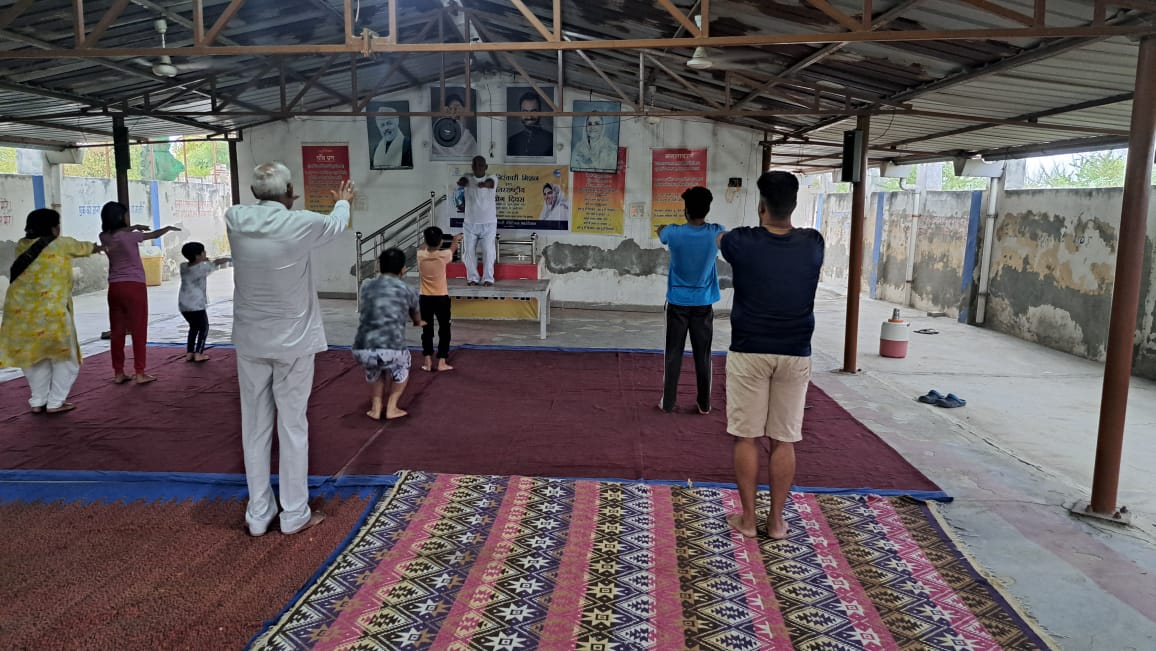 इस अवसर पर योग व प्रणायाम के प्रशिक्षक मुकेश कुमार संचालक सेवादल झज्जर के मार्गदर्शन में सुबह 6 से 7 बजे तक योग एवं प्राणायाम किया जिसमे बच्चों, महिलाओं और अनेकों महात्माओं ने भाग लिया।
